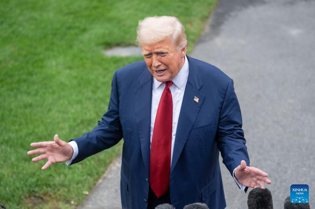 El presidente estadounidense, Donald Trump, camina para hablar ante la prensa en la Casa Blanca, en Washington D.C., Estados Unidos, el 1 de agosto de 2025. El presidente de Estados Unidos, Donald Trump, anunció el viernes que ordenó el despido de Erika McEntarfer, comisionada de la Oficina de Estadísticas Laborales (BLS, por sus siglas en inglés), a quien acusó de manipular la información con fines políticos. (Xinhua/Hu Yousong)