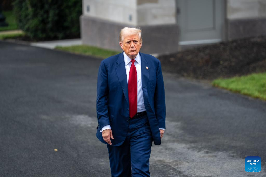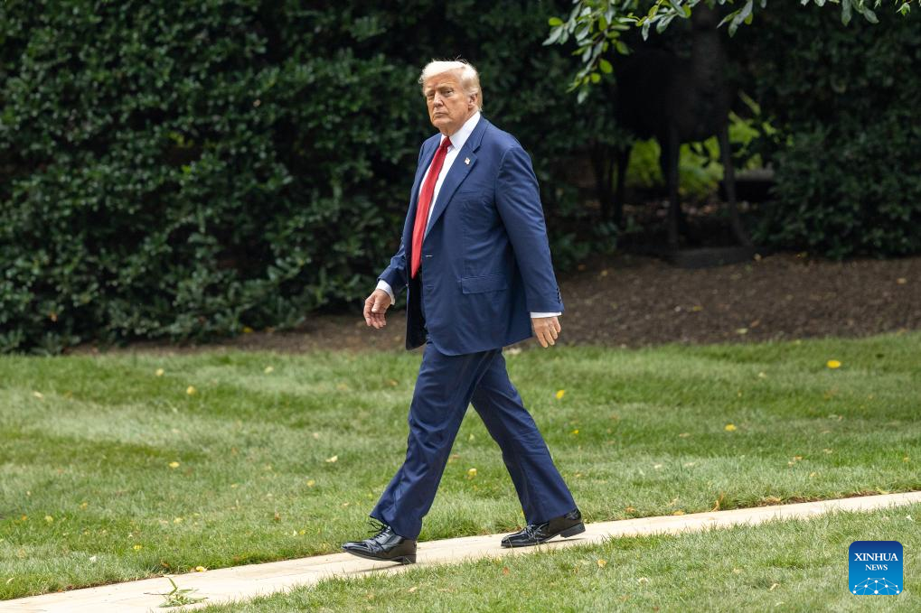 El presidente estadounidense, Donald Trump, camina hacia el Jardín Sur de la Casa Blanca, en Washington D.C., Estados Unidos, el 1 de agosto de 2025. El presidente de Estados Unidos, Donald Trump, anunció el viernes que ordenó el despido de Erika McEntarfer, comisionada de la Oficina de Estadísticas Laborales (BLS, por sus siglas en inglés), a quien acusó de manipular la información con fines políticos. (Xinhua/Hu Yousong)