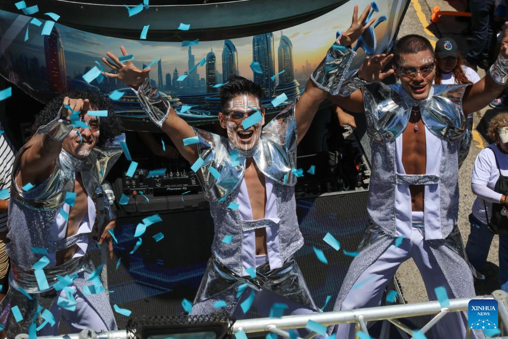 SAN SALVADOR, 1 agosto, 2025 (Xinhua) -- Bailarines participan en un desfile durante la inauguración de la temporada vacacional de las Fiestas Agostinas, en el departamento de San Salvador, El Salvador, el 1 de agosto de 2025. (Xinhua/Alexander Peña)