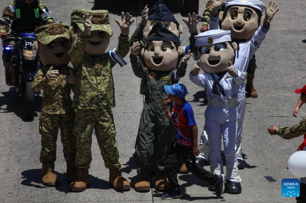 SAN SALVADOR, 1 agosto, 2025 (Xinhua) -- Personas participan en un desfile durante la inauguración de la temporada vacacional de las Fiestas Agostinas, en el departamento de San Salvador, El Salvador, el 1 de agosto de 2025. (Xinhua/Alexander Peña)