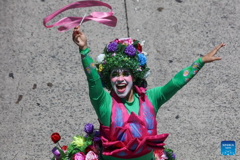 SAN SALVADOR, 1 agosto, 2025 (Xinhua) -- Una artista participa en un desfile durante la inauguración de la temporada vacacional de las Fiestas Agostinas, en el departamento de San Salvador, El Salvador, el 1 de agosto de 2025. (Xinhua/Alexander Peña)