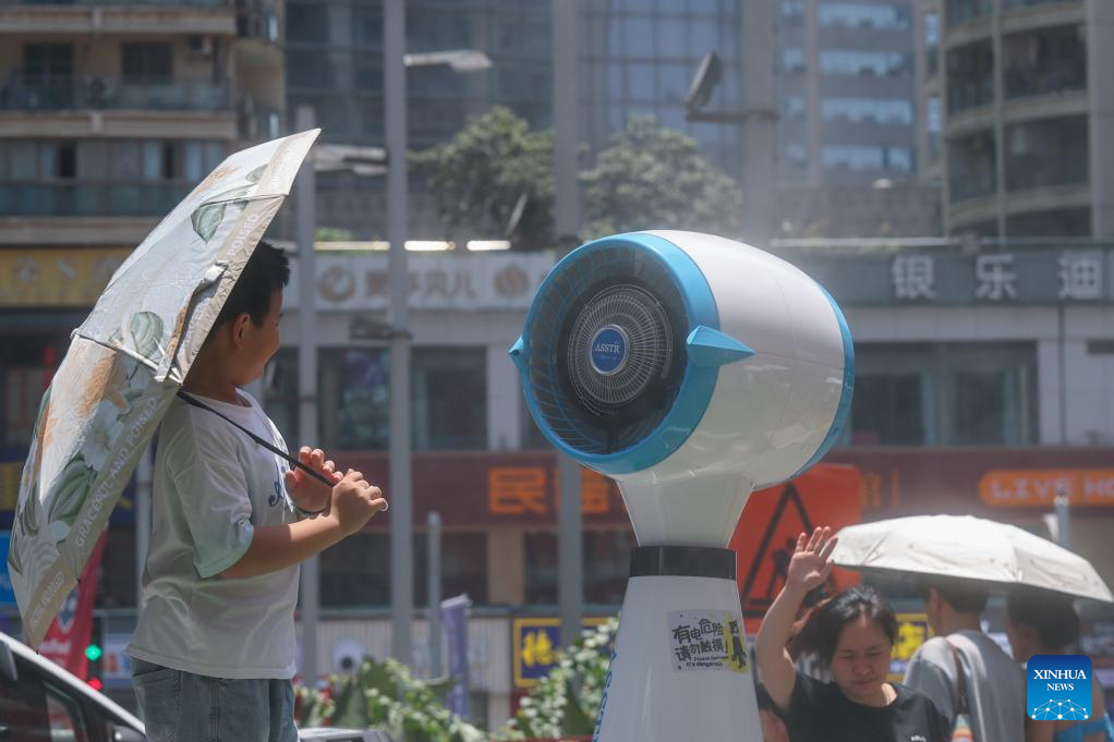 CHONGQING, 2 agosto, 2025 (Xinhua) -- Un niño se refresca frente a un ventilador, en el distrito de Jiangbei, en la municipalidad de Chongqing, en el suroeste de China, el 2 de agosto de 2025. Chongqing emitió el sábado una alerta por ola de calor, con temperaturas máximas alcanzando los 40-43 grados centígrados. (Xinhua/Chen Cheng)