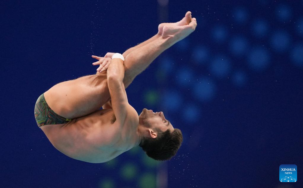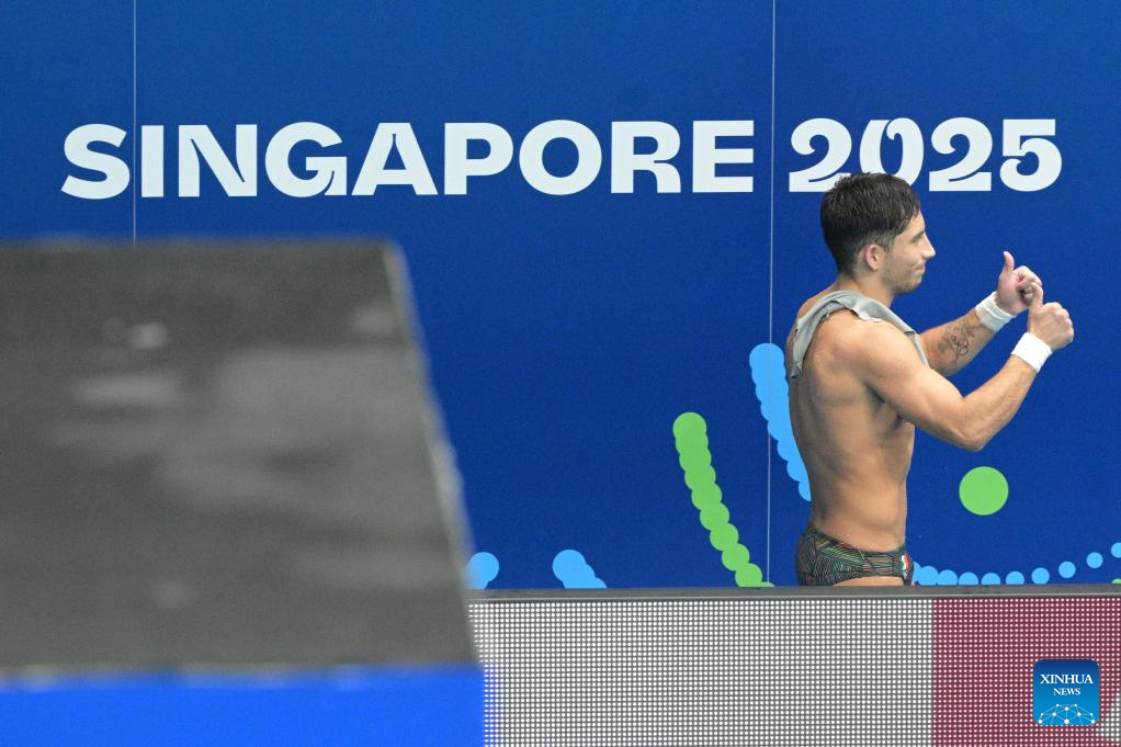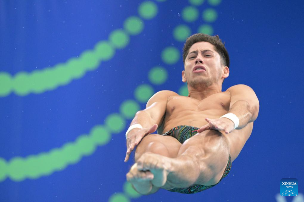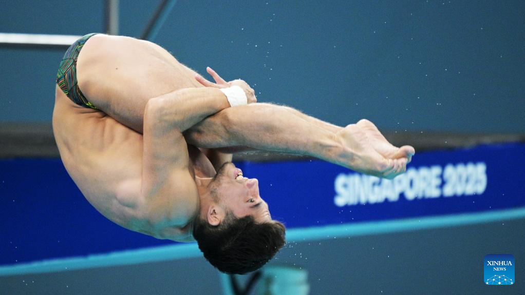 SINGAPUR, 3 agosto, 2025 (Xinhua) -- Randal Willars Valdez, de México, compite durante la final de plataforma de 10m masculina de clavados en el Campeonato Mundial de Deportes Acuáticos, en Singapur, el 3 de agosto de 2025. (Xinhua/Wu Zhizun)