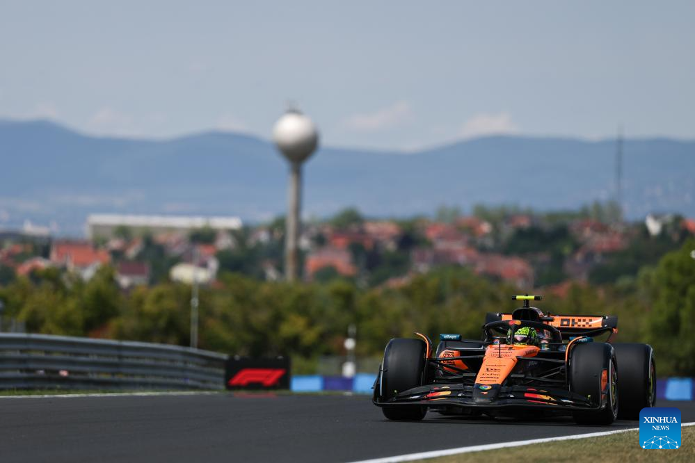 BUDAPEST, 3 agosto, 2025 (Xinhua) -- Imagen del 2 de agosto de 2025 del piloto británico de la escudería McLaren, Lando Norris, compitiendo durante la sesión de clasificación del Gran Premio de Hungría de Fórmula Uno, en el Hungaroring, en Mogyorod, cerca de Budapest, Hungría. (Xinhua/Qian Jun)