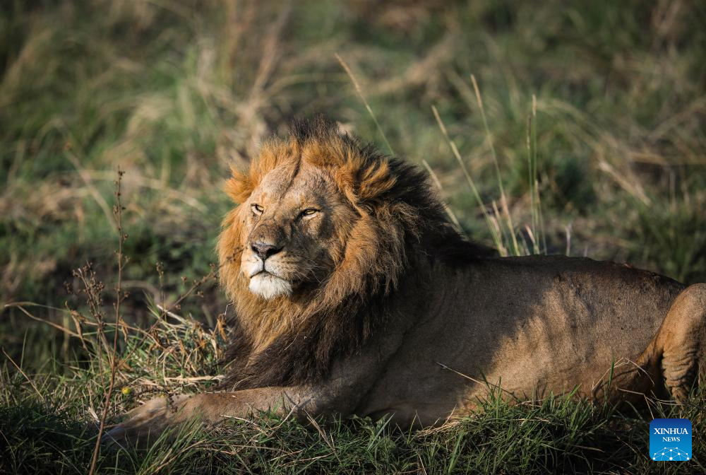 NAIROBI, 4 agosto, 2025 (Xinhua) -- Imagen del 30 de julio de 2025 de un león en la Reserva Nacional Masai Mara, en Kenia. (Xinhua/Han Xu)