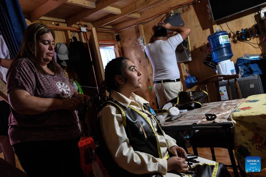 Pozo Almonte, CHILE, 5 ago (Xinhua) -- Han esperado todo el año por este momento. Los integrantes de uno de los bailes de la Sociedad Pieles Rojas Pedro de Valdivia afinan los últimos detalles para danzarle a la Virgen del Carmen, en medio del jolgorio, felicidad y esperanza de la Fiesta de La Tirana, la celebración religiosa más importante de Chile.