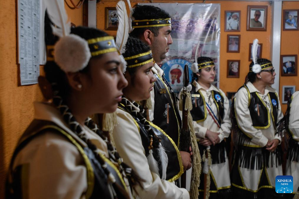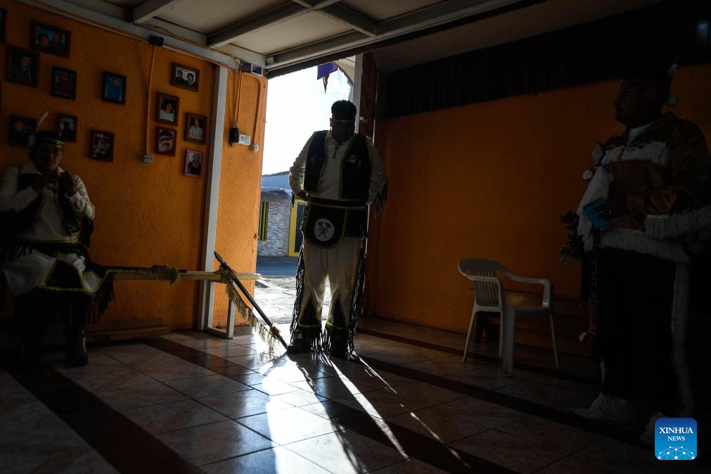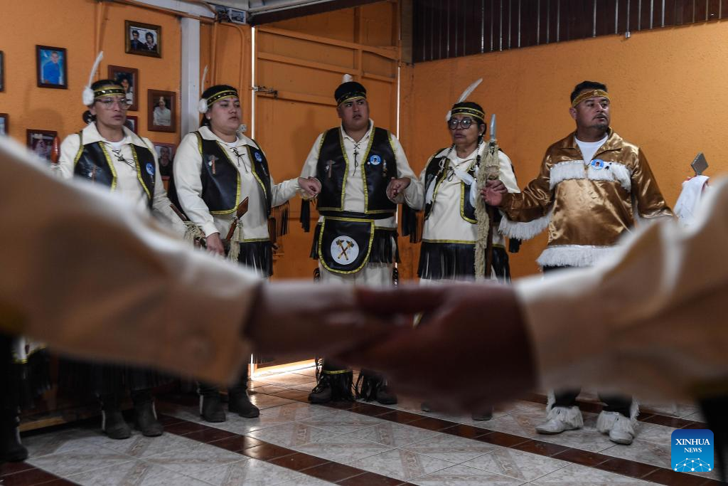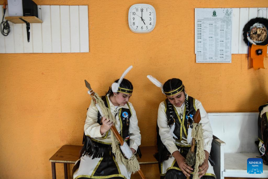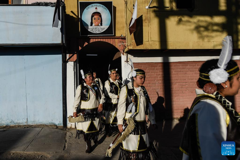 Patricio Araya Rivera, el presidente del Baile Religioso Pieles Rojas de Pedro de Valdivia, que agrupa 12 bailes, comentó a Xinhua que danzan para "venerar a la Virgen del Carmen".