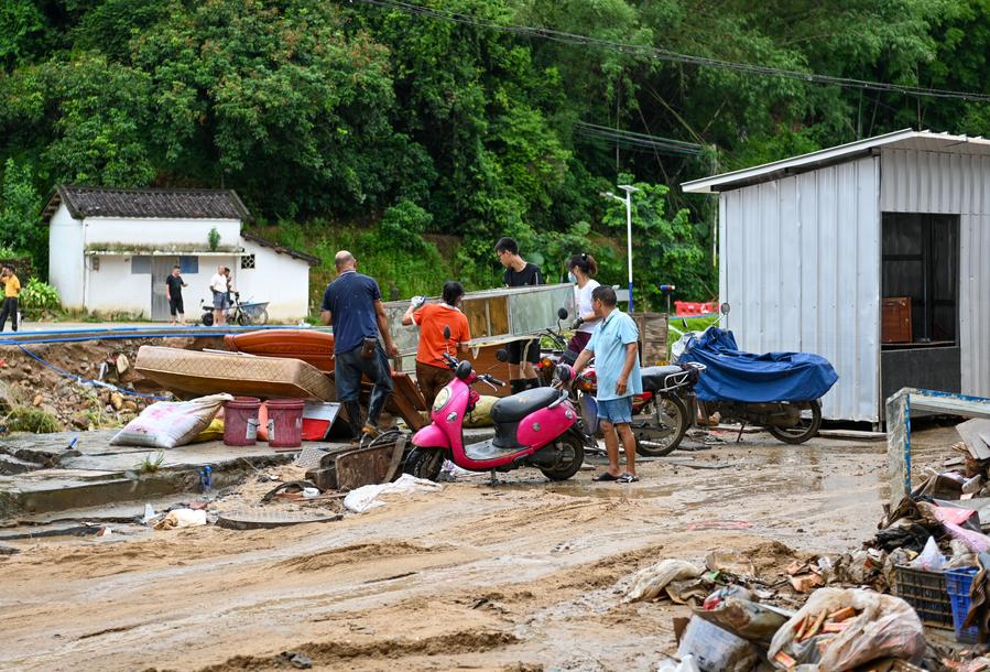 GUANGZHOU, 6 ago (Xinhua) -- Los trabajadores de rescate están actuando con rapidez para contener las inundaciones, buscar a residentes atrapados y despejar las carreteras bloqueadas después de varios días de lluvias torrenciales que provocaron deslizamientos de tierra e interrupciones del tráfico en la provincia de Guangdong, en el sur de China.
