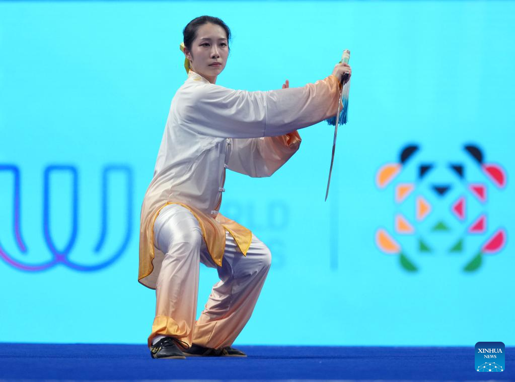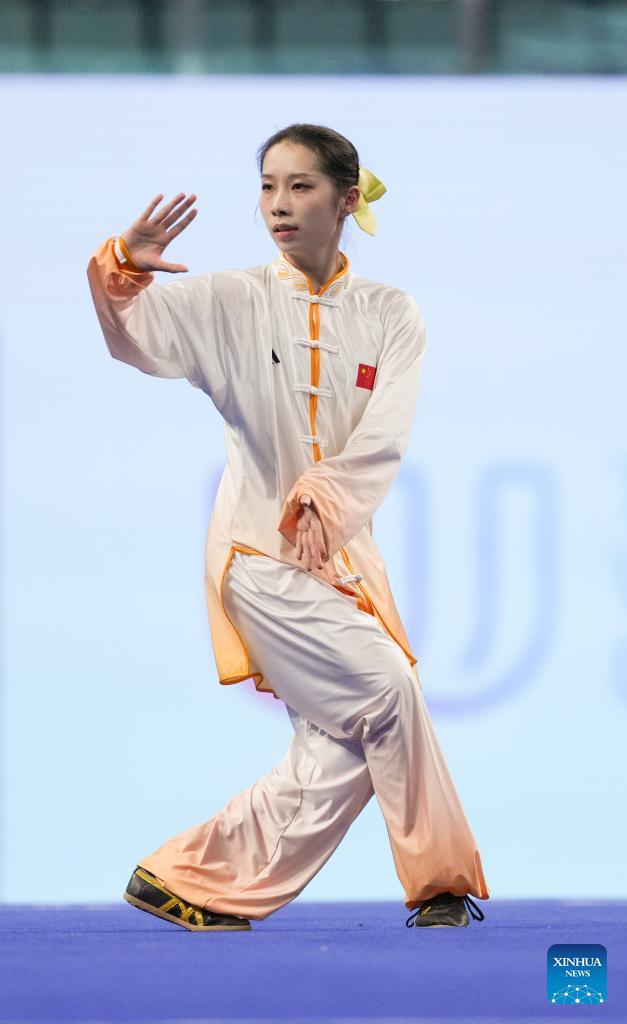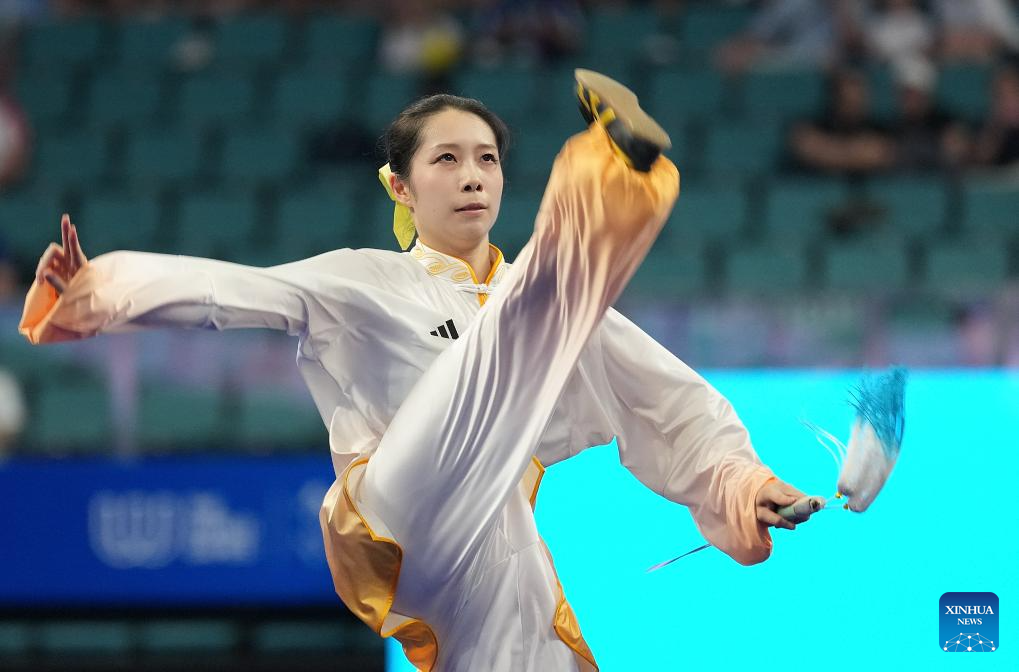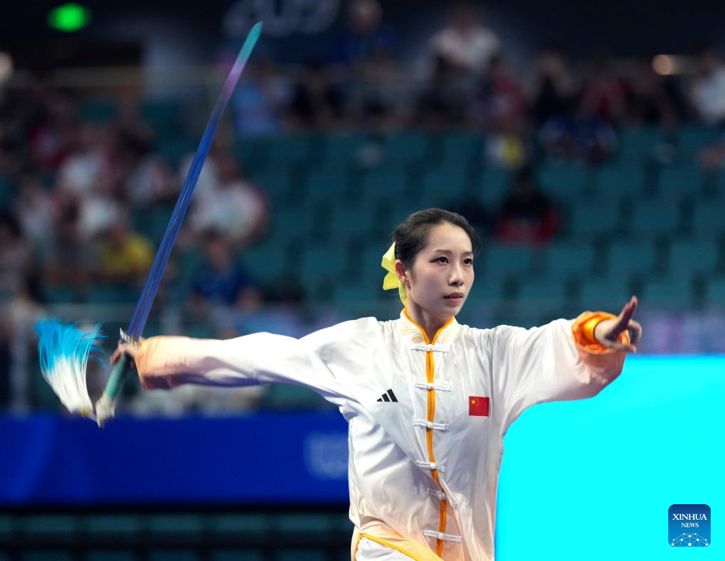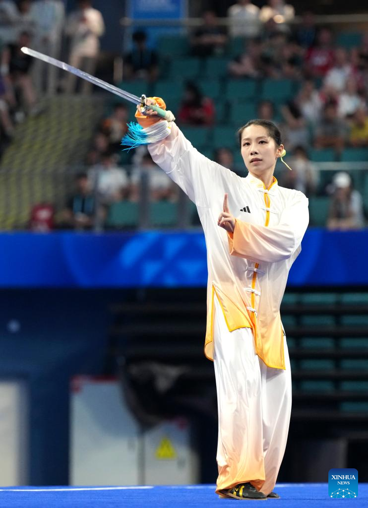 La atleta de 21 años de edad obtuvo 9,796 puntos para encabezar las posiciones luego de la rutina de Taijiquan en la mañana y terminó en tercera posición en la rutina de Taijijian en la noche, para lograr una puntuación combinada de 19,522 y llevarse así el oro.