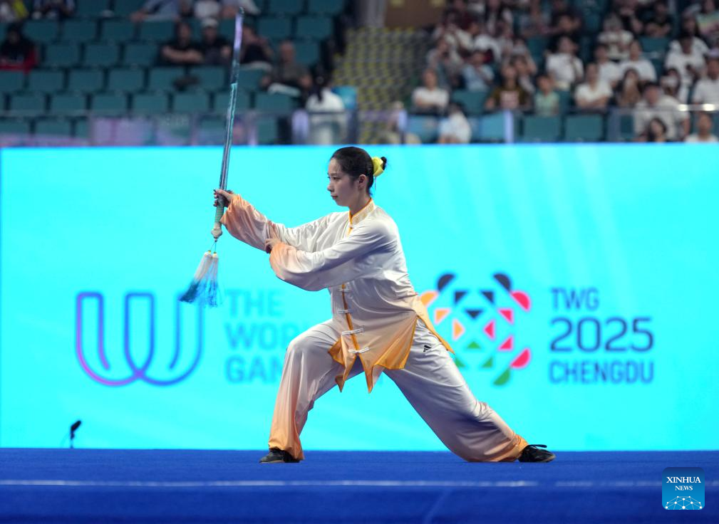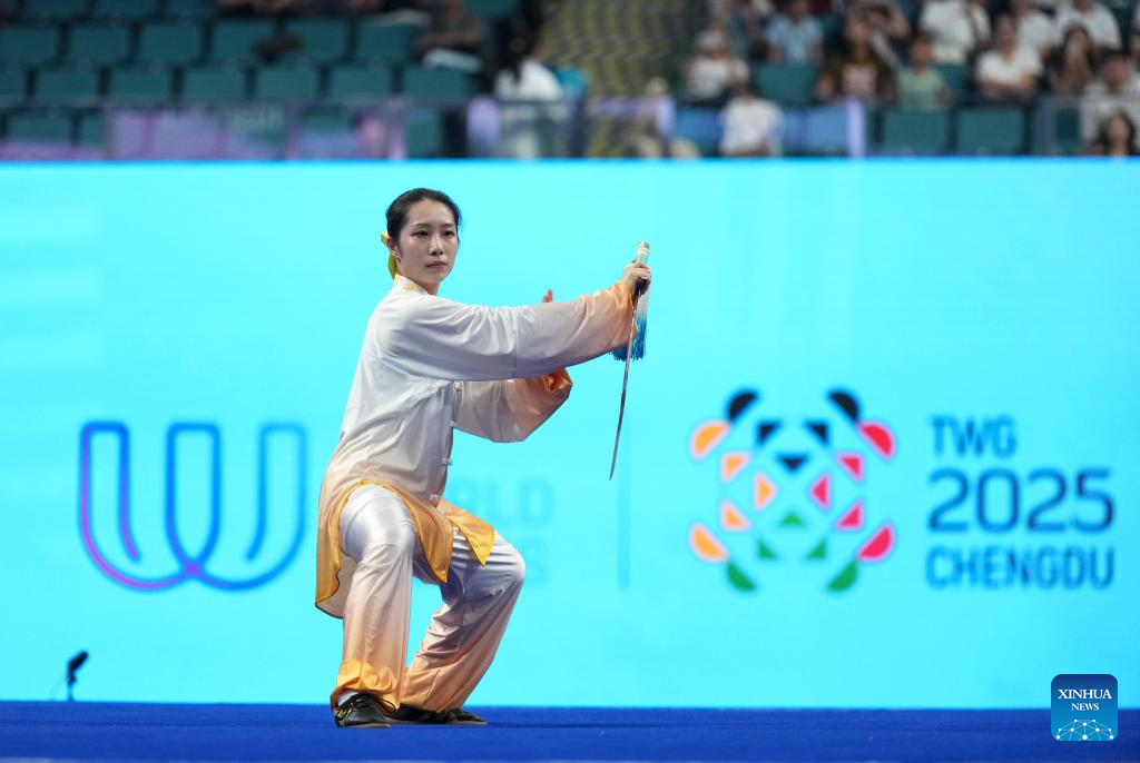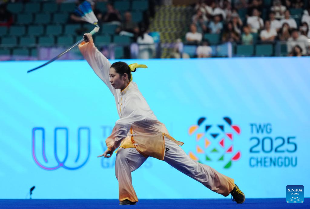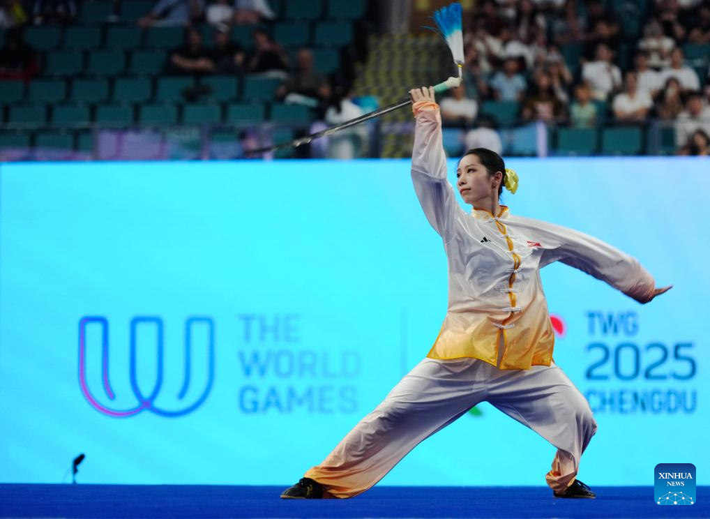CHENGDU, 8 ago (Xinhua) -- Lu Zhuoling ganó este viernes por la noche en las modalidades de Taijiquan y Taijijian de wushu femenil, para asegurar la primera medalla de oro de China en Los Juegos Mundiales 2025 en Chengdu.