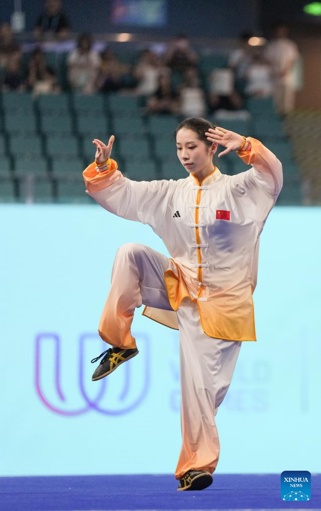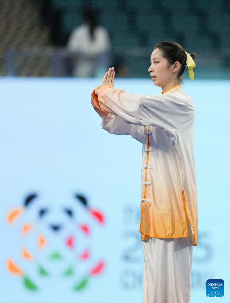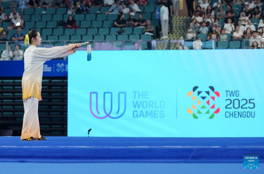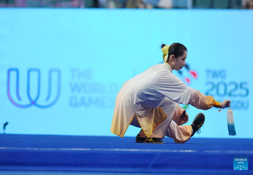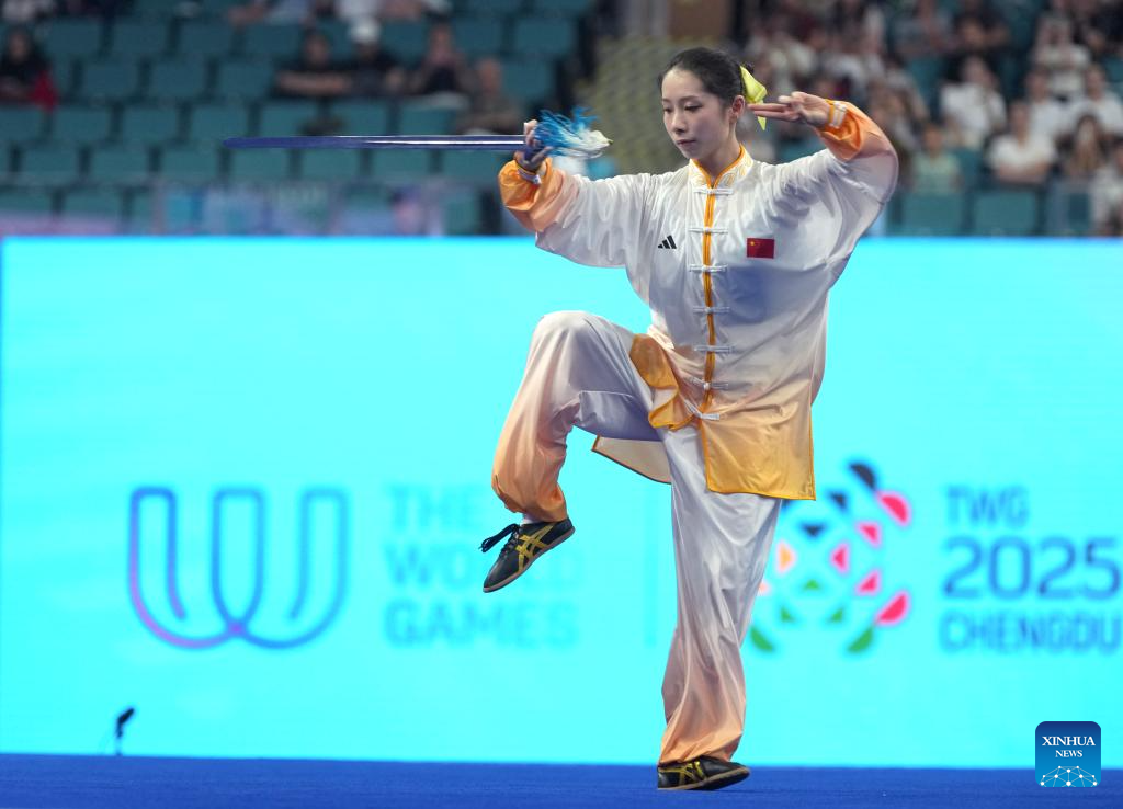 CHENGDU, 8 ago (Xinhua) -- Lu Zhuoling ganó este viernes por la noche en las modalidades de Taijiquan y Taijijian de wushu femenil, para asegurar la primera medalla de oro de China en Los Juegos Mundiales 2025 en Chengdu.