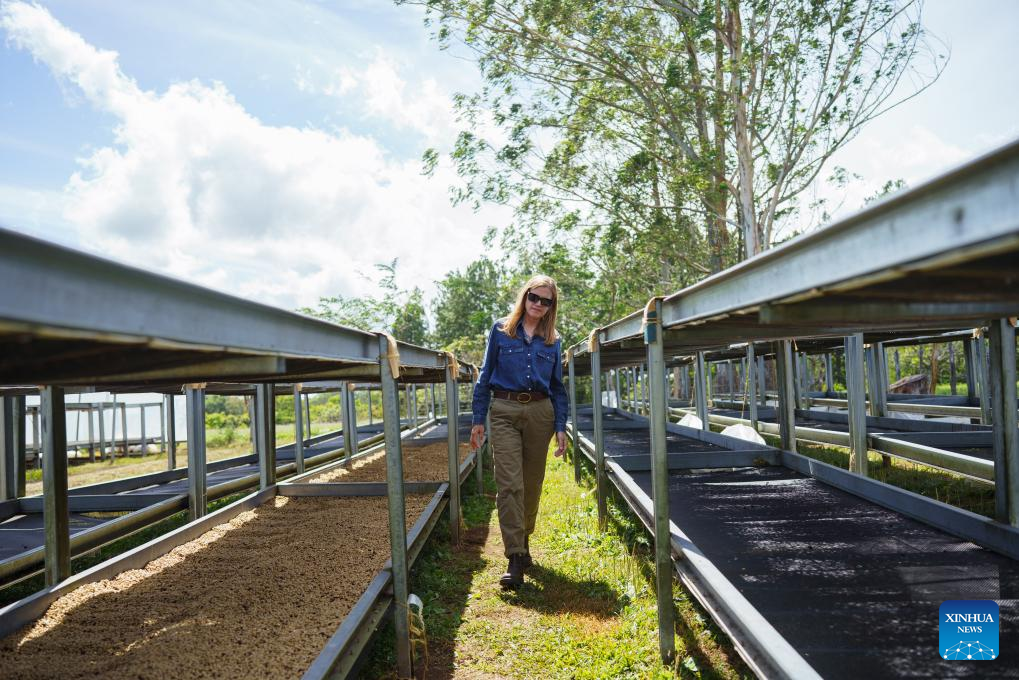 CHIRIQUI, 7 agosto, 2025 (Xinhua) -- Imagen del 3 de febrero de 2025 de Rachel Peterson, directora de Hacienda La Esmeralda, revisando granos de café, en la provincia de Chiriquí, Panamá. El café Geisha de Panamá registró el jueves un nuevo récord mundial en su precio, al alcanzar uno de los lotes del aromático los 30.204 dólares por kilogramo, en una subasta electrónica privada organizada por el certamen internacional "The Best of Panamá", informó la Asociación de Cafés Especiales de Panamá. (Xinhua/Xu Yongzheng)
