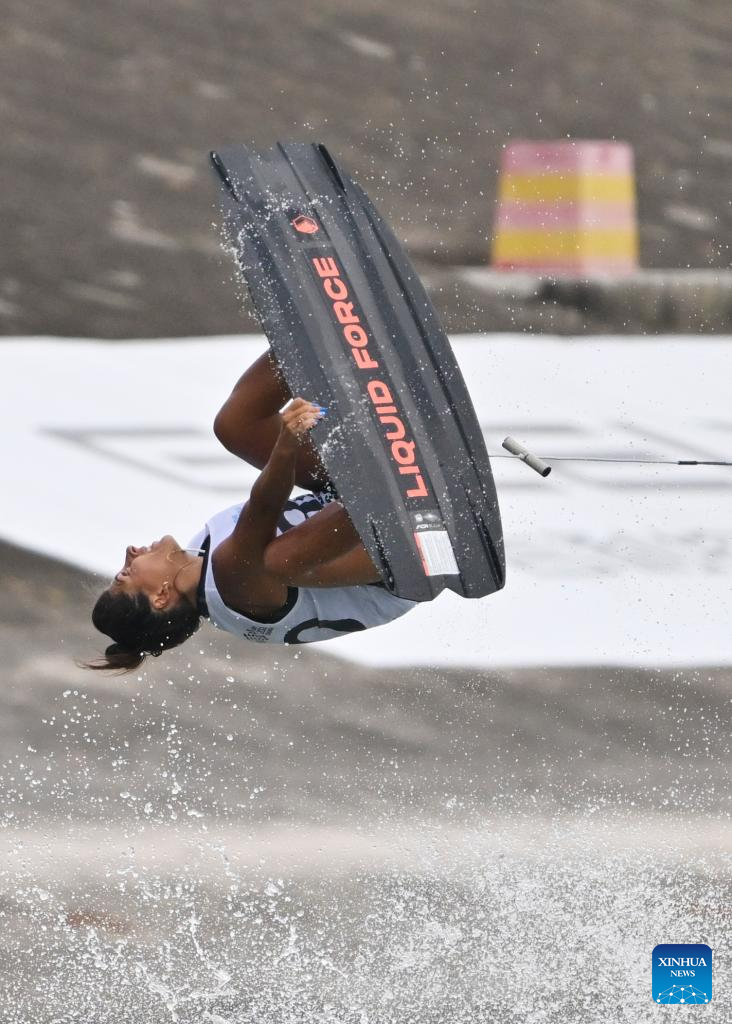 CHENGDU, 8 agosto, 2025 (Xinhua) -- Eugenia de Armas, de Argentina, compite durante la clasificación de wakeboard estilo libre femenino del evento de esquí acuático y wakeboard en los Juegos Mundiales 2025, en Chengdu, en la provincia de Sichuan, en el suroeste de China, el 8 de agosto de 2025. (Xinhua/Chen Zhenhai)