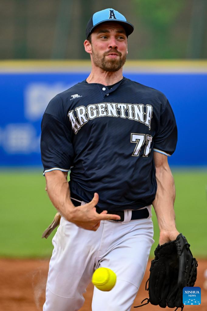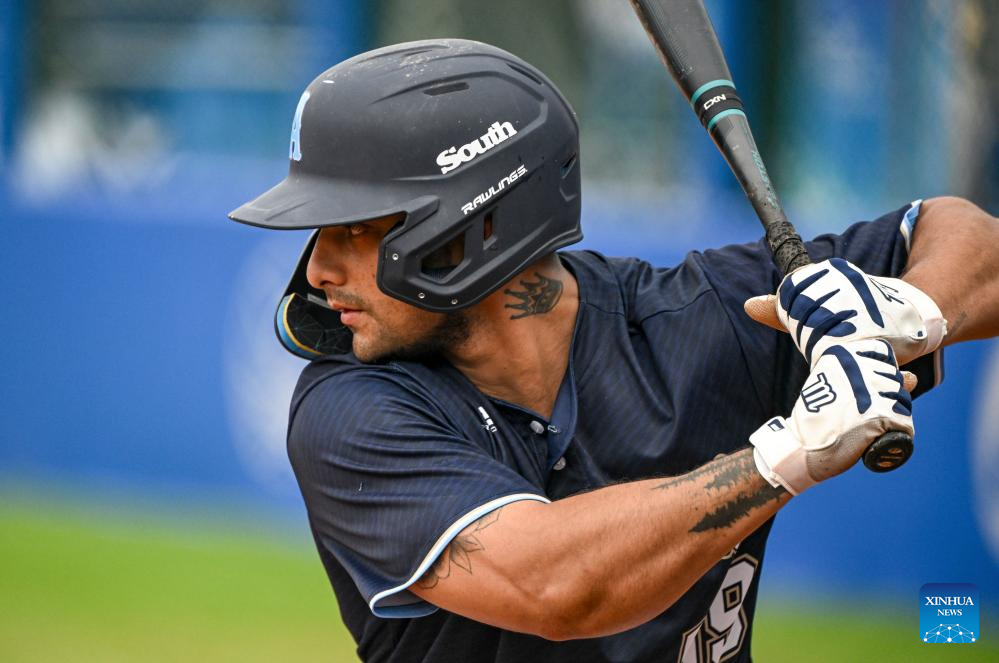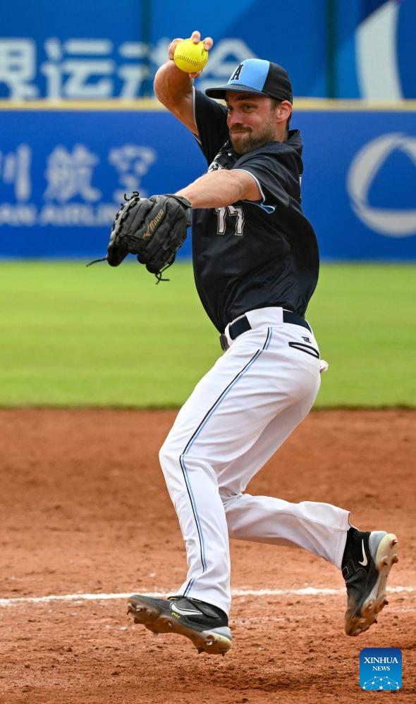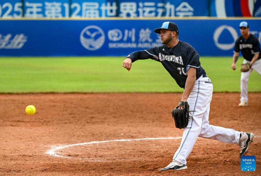 CHENGDU, 8 agosto, 2025 (Xinhua) -- Pablo Migliavacca, de Argentina, compite durante el partido del grupo A de la ronda preliminar de sóftbol masculino entre Japón y Argentina en los Juegos Mundiales 2025, en Chengdu, en la provincia de Sichuan, en el suroeste de China, el 8 de agosto de 2025. (Xinhua/Feng Kaihua)