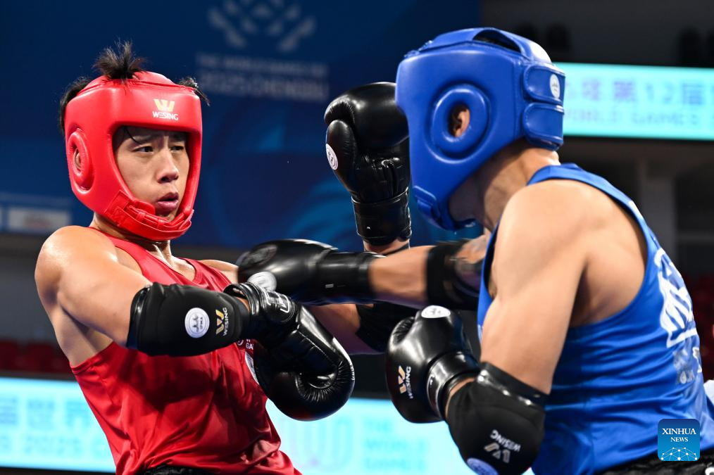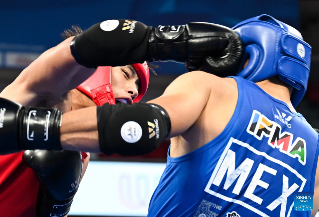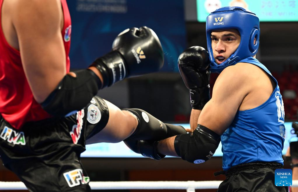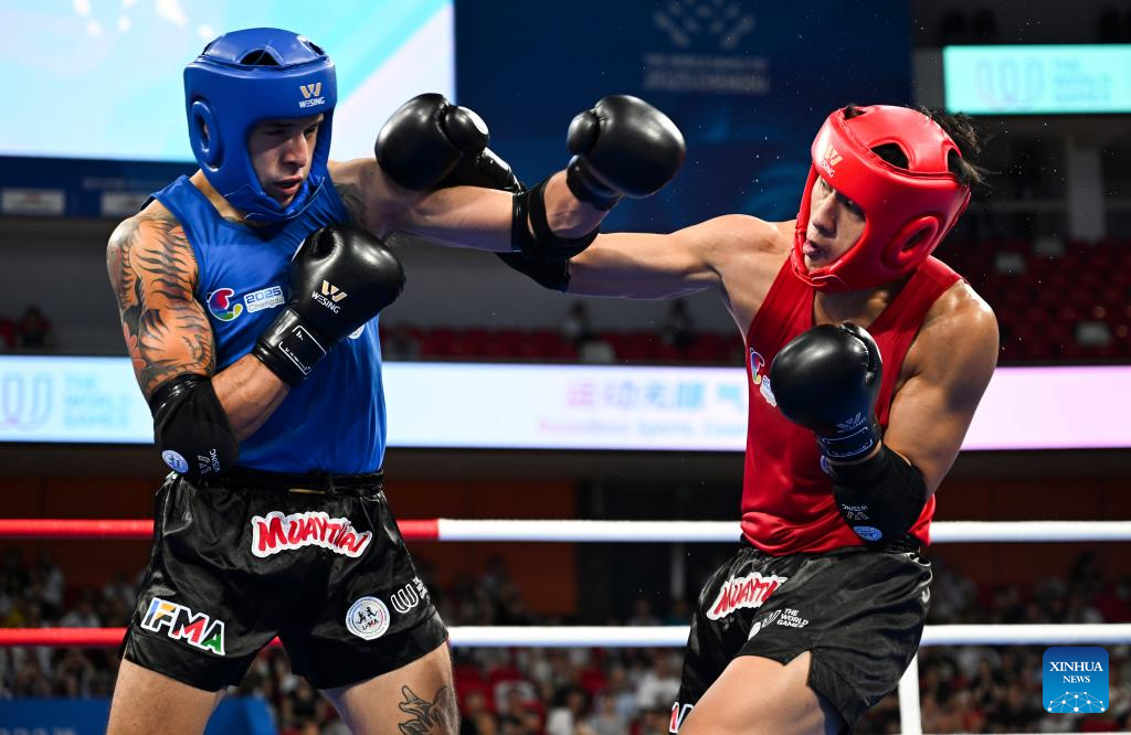 CHENGDU, 8 agosto, 2025 (Xinhua) -- Juan Antonio Hernández Totomol (d), de México, compite ante Zhang Chengcheng, de China, compiten durante los cuartos de final de -86 kg masculinos del evento de muay thai en los Juegos Mundiales 2025, en Chengdu, en la provincia de Sichuan, en el suroeste de China, el 8 de agosto de 2025. (Xinhua/Zhang Bowen)