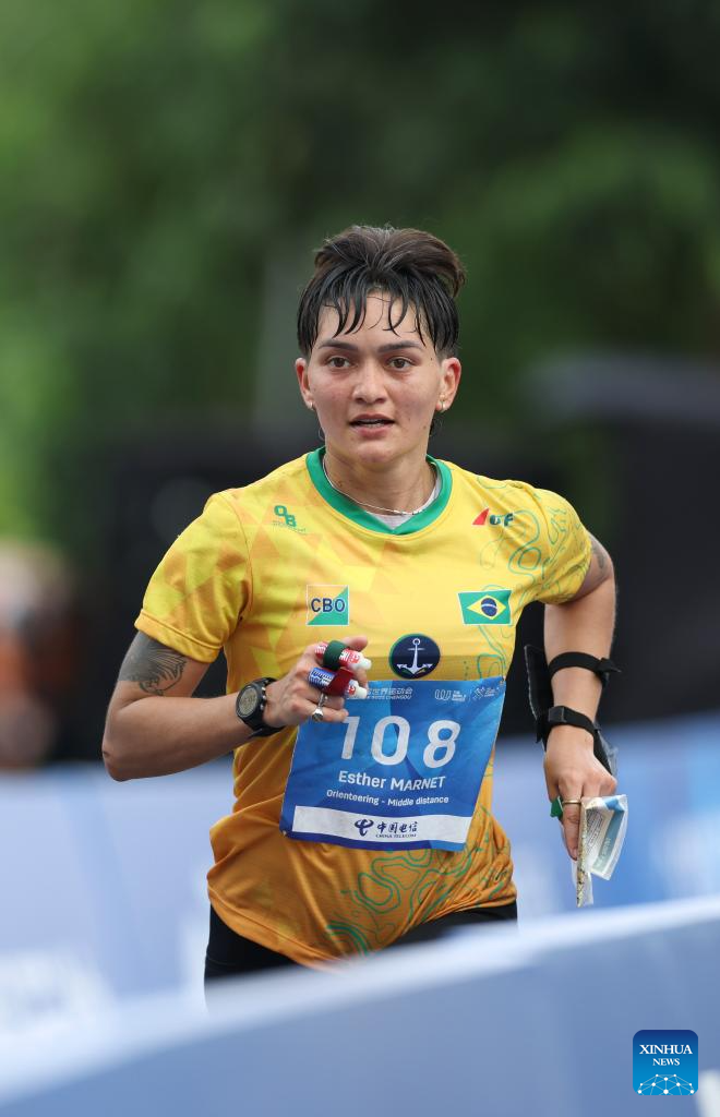 CHENGDU, 8 agosto, 2025 (Xinhua) -- Esther Marnet, de Brasil, compite durante la final de media distancia femenina del evento de orientación en los Juegos Mundiales 2025, en Chengdu, en la provincia de Sichuan, en el suroeste de China, 8 de agosto de 2025. (Xinhua/Wang Xiang)