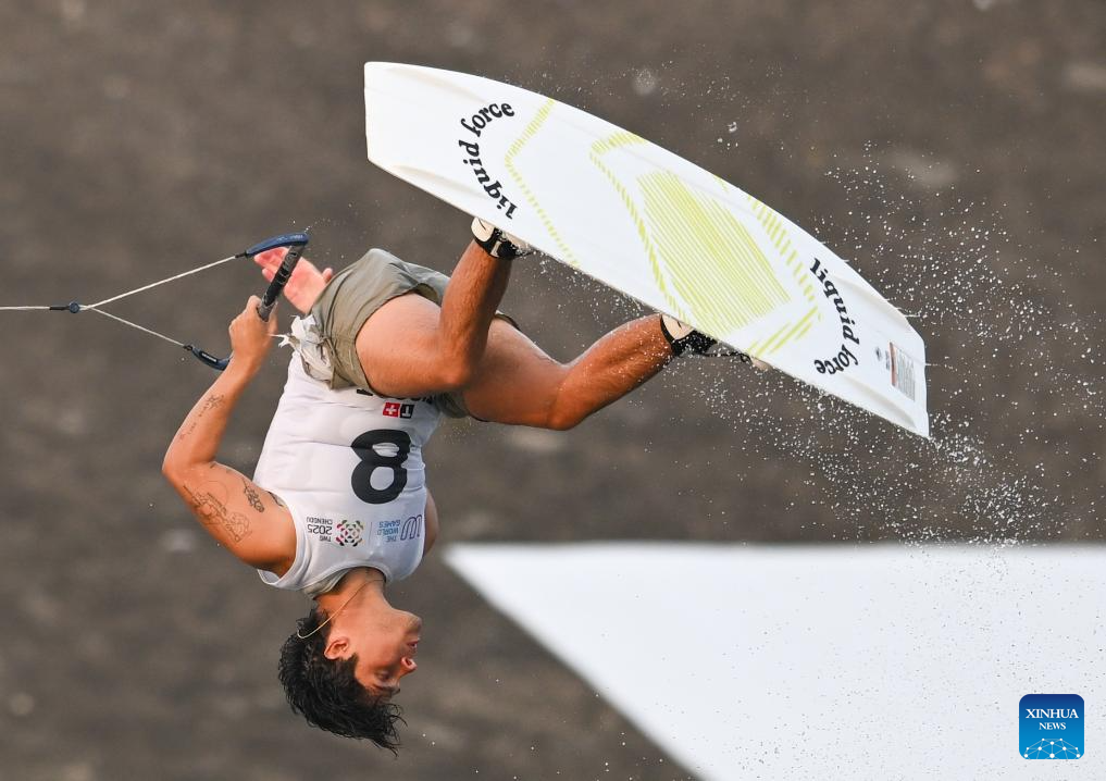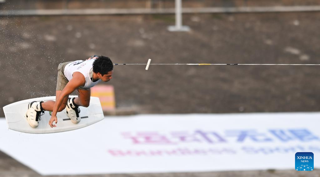 CHENGDU, 9 agosto, 2025 (Xinhua) -- Jorge Rocha, de Colombia, compite durante la semifinal de wakeboard estilo libre masculino del evento de esquí acuático y wakeboard en los Juegos Mundiales 2025, en Chengdu, en la provincia de Sichuan, en el suroeste de China, el 9 de agosto de 2025. (Xinhua/Chen Zhenhai)