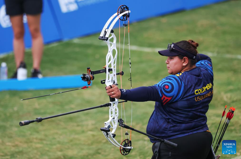 CHENGDU, 9 agosto, 2025 (Xinhua) -- Alejandra Usquiano, de Colombia, compite ante Meeri-Marita Paas, de Estonia, durante el encuentro por la medalla de bronce de compuesto femenino en el evento de tiro con arco en los Juegos Mundiales 2025, en Chengdu, en la provincia de Sichuan, en el suroeste de China, el 9 de agosto de 2025. (Xinhua/Chen Cheng)
