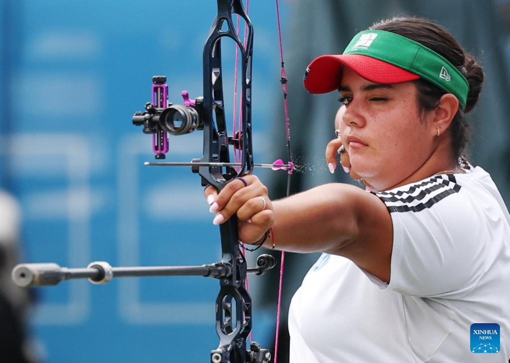 CHENGDU, 9 agosto, 2025 (Xinhua) -- Andrea Maya Becerra Arizaga, de México, compite ante Lisell Jaatma, de Estonia, durante el encuentro por la medalla de oro de compuesto femenino en el evento de tiro con arco en los Juegos Mundiales 2025, en Chengdu, en la provincia de Sichuan, en el suroeste de China, el 9 de agosto de 2025. (Xinhua/Yang Wenbin)