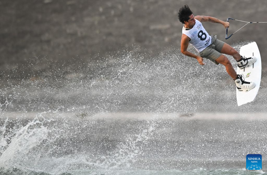 CHENGDU, 9 agosto, 2025 (Xinhua) -- Pablo Monroy, de México, compite durante la semifinal de wakeboard estilo libre masculino del evento de esquí acuático y wakeboard en los Juegos Mundiales 2025, en Chengdu, en la provincia de Sichuan, en el suroeste de China, el 9 de agosto de 2025. (Xinhua/Chen Zhenhai)
