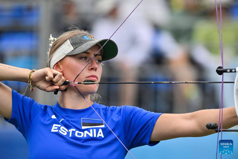CHENGDU, 9 agosto, 2025 (Xinhua) -- Meeri-Marita Paas, de Estonia, compite ante Alejandra Usquiano, de Colombia, durante el encuentro por la medalla de bronce de compuesto femenino en el evento de tiro con arco en los Juegos Mundiales 2025, en Chengdu, en la provincia de Sichuan, en el suroeste de China, el 9 de agosto de 2025. (Xinhua/Yang Wenbin)