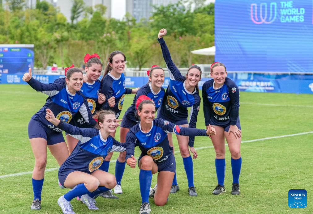 CHENGDU, 9 agosto, 2025 (Xinhua) -- Jugadoras de Chile festejan al término del partido del grupo B de la ronda preliminar femenina del evento de fistball entre Chile y Estados Unidos en los Juegos Mundiales 2025, en Chengdu, en la provincia de Sichuan, en el suroeste de China, el 9 de agosto de 2025. (Xinhua/Tenzin Nyida)