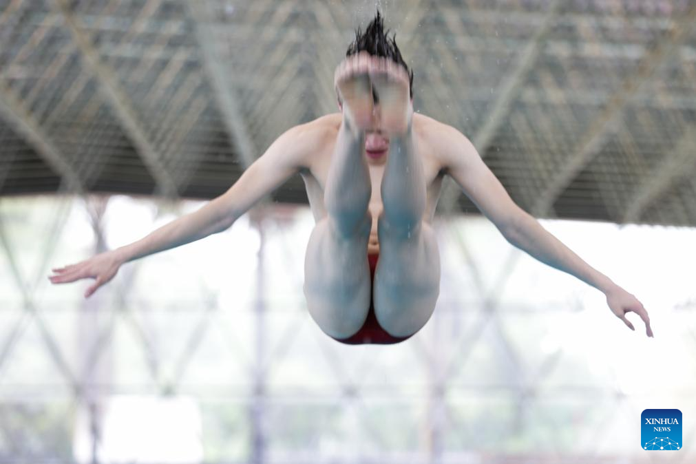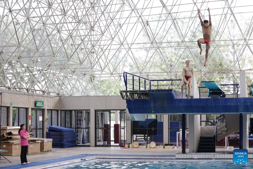 CIUDAD DE MEXICO, 9 agosto, 2025 (Xinhua) -- Imagen del 8 de agosto de 2025 del clavadista mexicano, Joaquín Rosado, realizando un clavado durante un entrenamiento de integrantes de la selección nacional de clavados llevado a cabo en el Centro Nacional de Desarrollo de Talentos Deportivos y Alto Rendimiento, en la Ciudad de México, capital de México. (Xinhua/Francisco Cañedo)