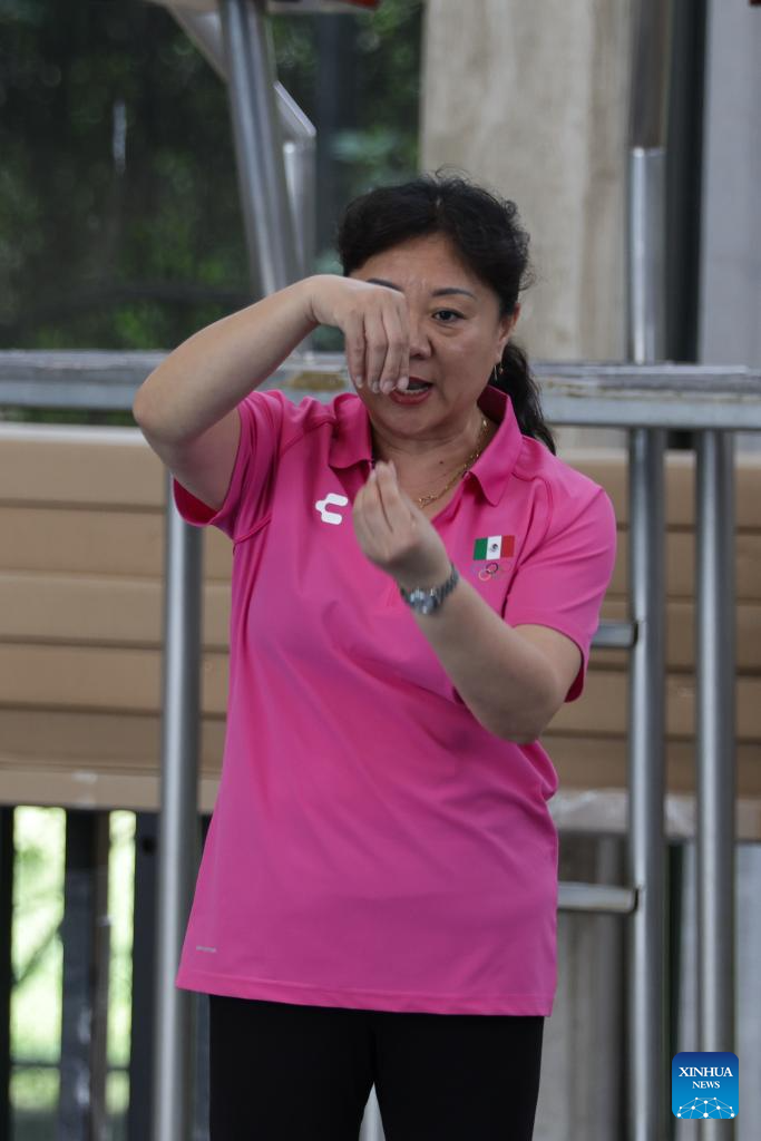 CIUDAD DE MEXICO, 9 agosto, 2025 (Xinhua) -- Imagen del 8 de agosto de 2025 de la entrenadora china, Ma Jin, dando indicaciones durante un entrenamiento de integrantes de la selección nacional de clavados llevado a cabo en el Centro Nacional de Desarrollo de Talentos Deportivos y Alto Rendimiento, en la Ciudad de México, capital de México. (Xinhua/Francisco Cañedo)