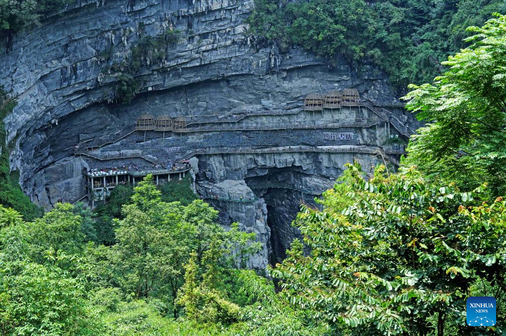 LIUZHOU, 10 agosto, 2025 (Xinhua) -- Imagen del 9 de agosto de 2025 de una librería en el acantilado en un punto escénico, en el distrito autónomo mulao de Luocheng, en la ciudad de Hechi, en la región autónoma zhuang de Guangxi, en el sur de China. La librería en el acantilado fue inaugurada en mayo de este año y ha registrado 100.000 visitas hasta ahora por su diseño arquitectónico único y experiencia de lectura. (Xinhua/Long Tao)