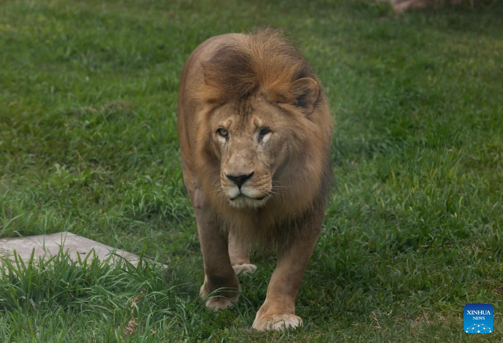 Imagen del 9 de agosto de 2025 del león Sultán caminando en su recinto del zoológico Parque de Las Leyendas en el marco de la celebración del Día Mundial del León, en Lima, Perú. La protección del león, especie considerada vulnerable a nivel global, requiere del compromiso y la conciencia de todos para su preservación, afirmó el domingo el jefe del Area de Manejo y Bienestar del Parque de las Leyendas de Perú, Carlos Párraga. (Xinhua/Mariana Bazo)