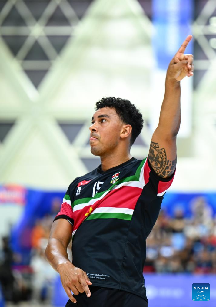 CHENGDU,11 agosto, 2025 (Xinhua) -- Nahuel Ezequiel Vener, de Argentina, compite durante el partido del Grupo B de la ronda preliminar masculina de fistball entre Chile y Argentina en los Juegos Mundiales 2025, en Chengdu, en la provincia de Sichuan, en el suroeste de China, el 11 de agosto de 2025. (Xinhua/Wang Xiang)