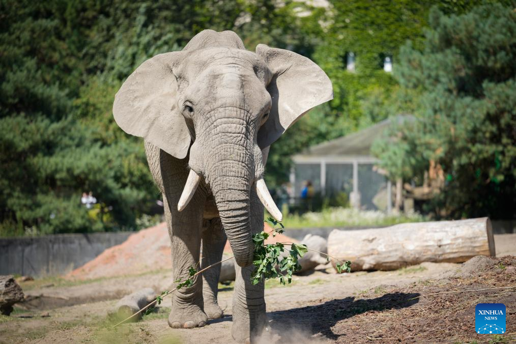 VARSOVIA, 12 agosto, 2025 (Xinhua) -- Un elefante se alimenta en el Zoológico de Varsovia, en Varsovia, Polonia, el 12 de agosto de 2025. La casa de los elefantes del zoológico organizó actividades especiales el martes para conmemorar el Día Mundial del Elefante. (Xinhua/Jaap Arriens)