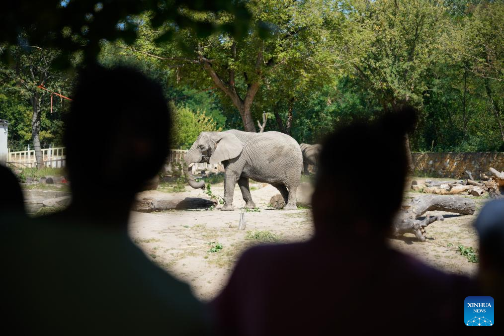 VARSOVIA, 12 agosto, 2025 (Xinhua) -- Visitantes observan elefantes en el Zoológico de Varsovia, en Varsovia, Polonia, el 12 de agosto de 2025. La casa de los elefantes del zoológico organizó actividades especiales el martes para conmemorar el Día Mundial del Elefante. (Xinhua/Jaap Arriens)