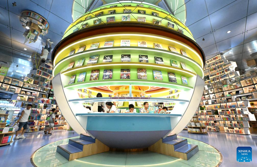 SHIJIAZHUANG, 12 agosto, 2025 (Xinhua) -- Imagen del 11 de agosto de 2025 de niños leyendo libros en una librería, en Shijiazhuang, en la provincia de Hebei, en el norte de China. Niños de toda China participan en diversos tipos de actividades para pasar sus vacaciones de verano. (Xinhua/Chen Qibao)