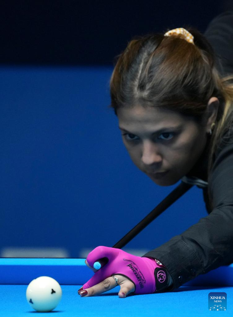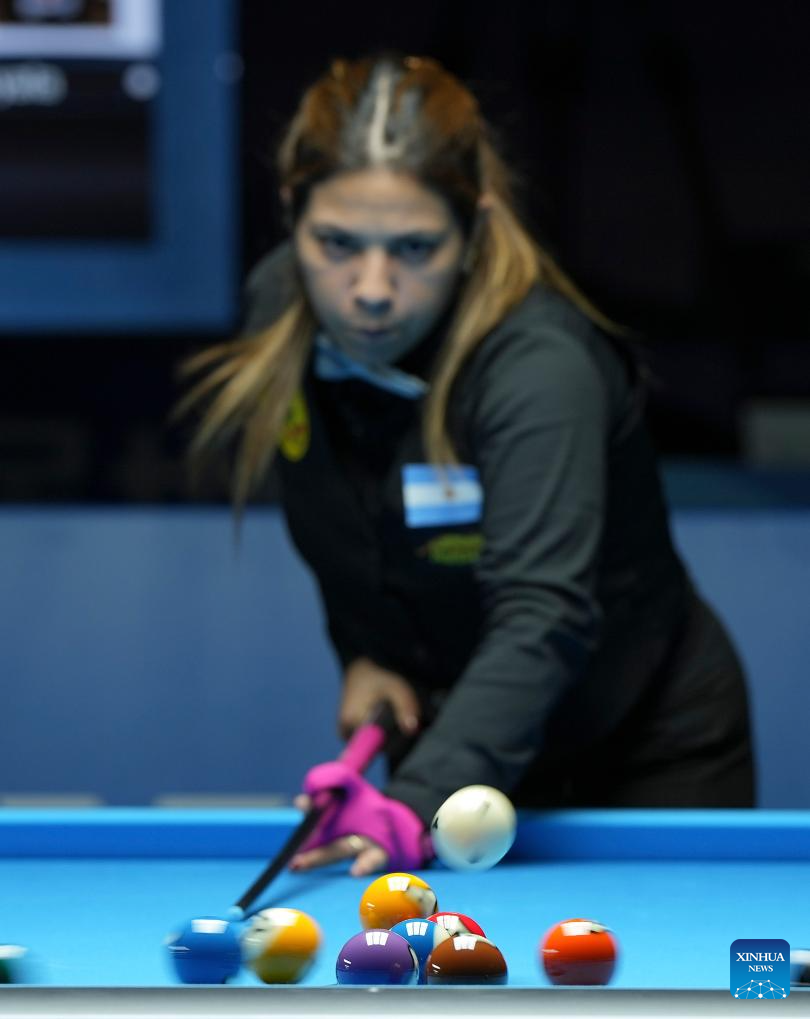 CHENGDU, 12 agosto, 2025 (Xinhua) -- Soledad Ayala, de Argentina, compite durante el partido de cuartos de final de pool femenino de billar entre Soledad Ayala, de Argentina, y Liu Shasha, de China, en los Juegos Mundiales 2025, en Chengdu, en la provincia de Sichuan, en el suroeste de China, el 12 de agosto de 2025. (Xinhua/Xu Bingjie)