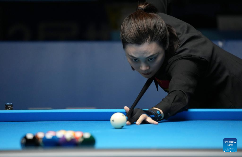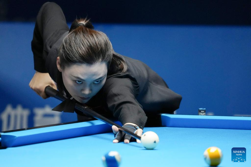 CHENGDU, 12 agosto, 2025 (Xinhua) -- Liu Shasha, de China, compite durante el partido de cuartos de final de pool femenino de billar entre Soledad Ayala, de Argentina, y Liu Shasha, de China, en los Juegos Mundiales 2025, en Chengdu, en la provincia de Sichuan, en el suroeste de China, el 12 de agosto de 2025. (Xinhua/Xu Bingjie)