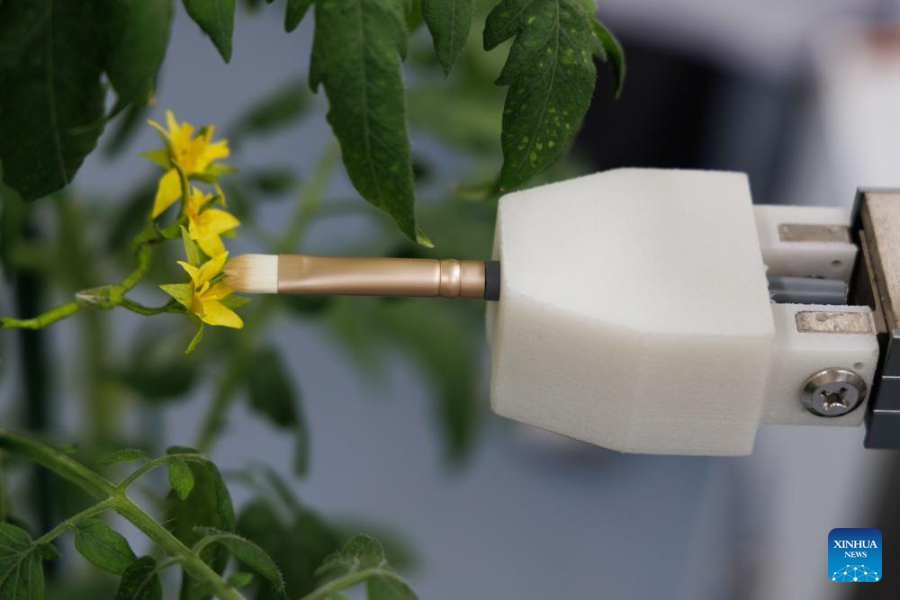 BEIJING, 12 agosto, 2025 (Xinhua) -- Imagen del 29 de noviembre de 2024 del robot GEAIR realizando trabajos de polinización híbrida en un invernadero, en Beijing, capital de China. Científicos chinos han desarrollado recientemente el primer robot del mundo capaz de realizar un proceso de cría integral, lo que pone de relieve la profunda integración de la biotecnología y las tecnologías de inteligencia artificial en el sector de la cría inteligente agrícola. (Xinhua/Instituto de Genética y Biología del Desarrollo de la Academia de Ciencias de China)