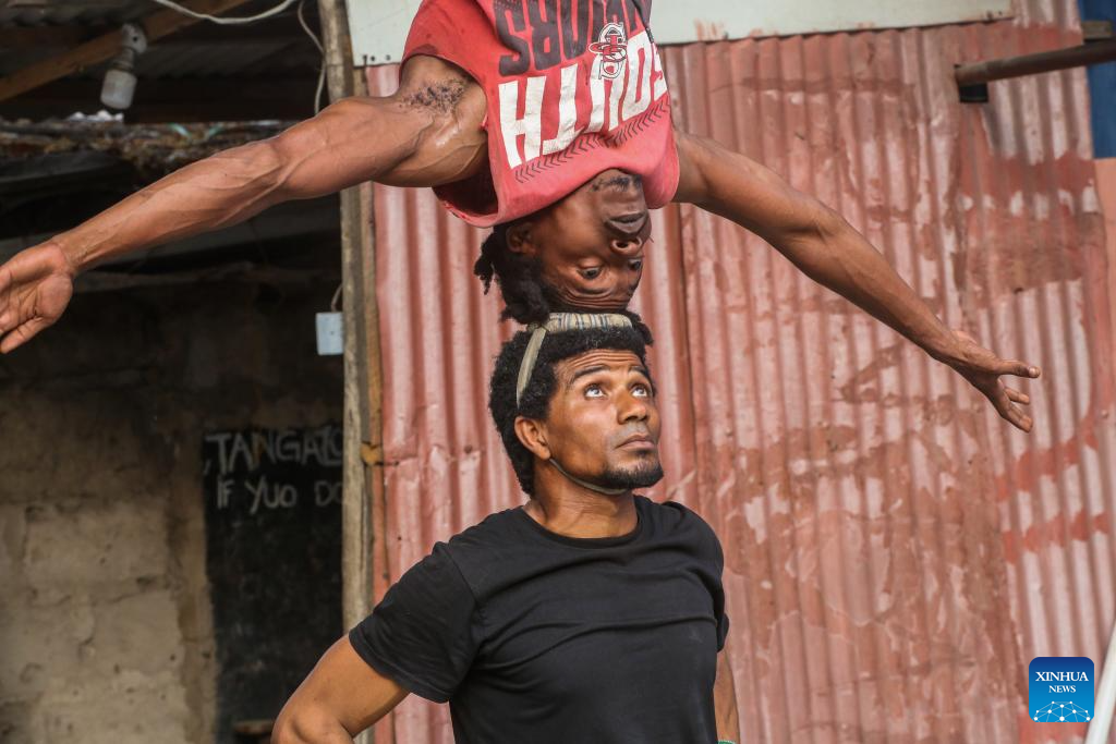 DAR ES SALAAM, 13 agosto, 2025 (Xinhua) -- Imagen del 11 de agosto de 2025 de estudiantes practicando un acto de equilibrio en pareja durante una sesión de entrenamiento de acrobacias, en Dar es Salaam, Tanzania. Veinte jóvenes tanzanos viajaron a China para aprender acrobacia, lo que se convirtió en un hito en la historia de los intercambios culturales entre China y Tanzania. Desde las heladas calles de Wuhan hasta los soleados campos de entrenamiento de Dar es Salaam, la historia de las acrobacias tanzanas continúa desarrollándose. (Xinhua/Emmanuel Herman)