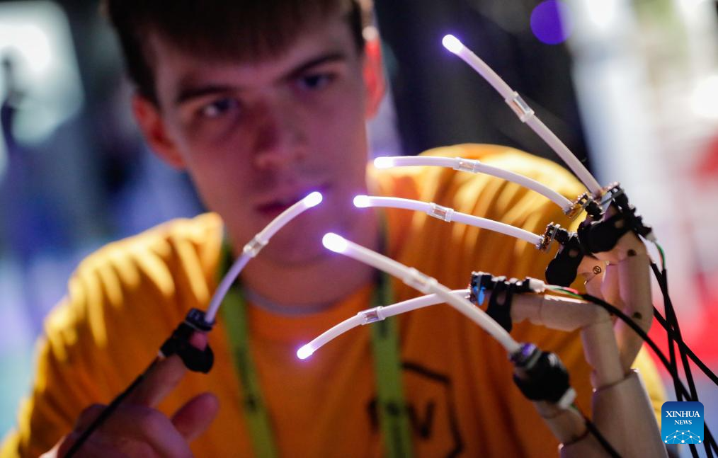 VANCOUVER, 13 agosto, 2025 (Xinhua) -- Imagen del 12 de agosto de 2025 de un visitante revisando el movimiento de actuadores de aleación con memoria de forma durante la Principal Conferencia y Exposición sobre Gráficos por Computadora y Técnicas Interactivas (SIGGRAPH 2025), en el Centro de Convenciones de Vancouver, en Vancouver, Canadá. La exposición muestra la innovación y los avances tecnológicos en gráficos por computadora, arte digital, animación, efectos visuales, nuevas realidades, inteligencia artificial, investigación y más. (Xinhua/Liang Sen)