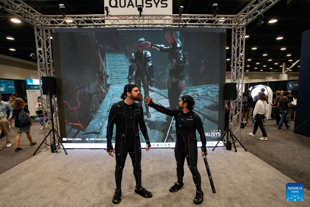 VANCOUVER, 13 agosto, 2025 (Xinhua) -- Imagen del 12 de agosto de 2025 de expositores mostrando un sistema de captura de movimiento para videojuegos durante la Principal Conferencia y Exposición sobre Gráficos por Computadora y Técnicas Interactivas (SIGGRAPH 2025), en el Centro de Convenciones de Vancouver, en Vancouver, Canadá. La exposición muestra la innovación y los avances tecnológicos en gráficos por computadora, arte digital, animación, efectos visuales, nuevas realidades, inteligencia artificial, investigación y más. (Xinhua/Liang Sen)