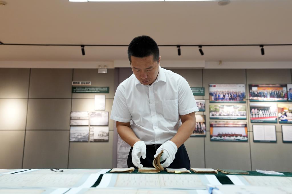 HARBIN, 15 agosto, 2025 (Xinhua) -- Imagen del 13 de agosto de 2025 de Jin Shicheng, curador de la Sala de Exhibición de Evidencias de Crímenes Cometidos por la Unidad 731 del Ejército Imperial Japonés, colocando las nuevas evidencias de la Unidad 731 en su lugar en la sala, en Harbin, en la provincia de Heilongjiang, en el noreste de China. Nuevas evidencias sobre la Unidad 731, una unidad japonesa de guerra bacteriológica que operó durante la Segunda Guerra Mundial, fueron presentadas el viernes en Harbin, capital de la provincia de Heilongjiang, en el noreste de China. (Xinhua/Wang Song)