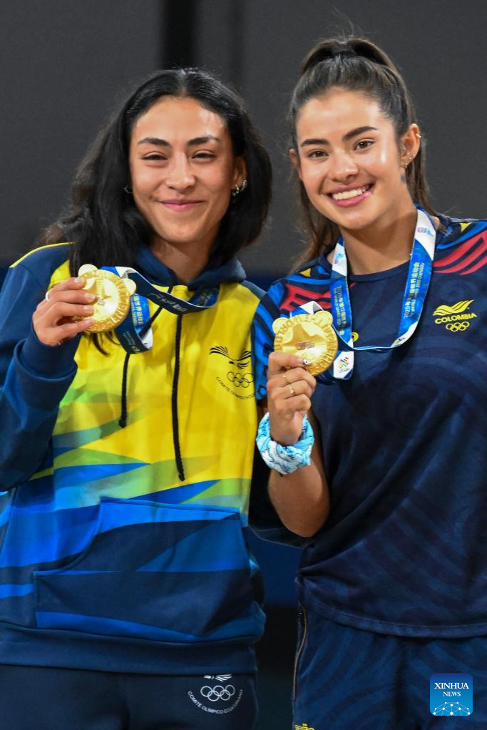 CHENGDU, 14 agosto, 2025 (Xinhua) -- Las medallistas de oro, Gabriela Rueda (d), de Colombia, y Gabriela Vargas Sarmiento, de Ecuador, posan durante la ceremonia de premiación de la carrera de 5000 m por puntos femenina de patinaje de velocidad en línea en pista, en los Juegos Mundiales 2025, en Chengdu, en la provincia de Sichuan, en el suroeste de China, el 14 de agosto de 2025. (Xinhua/Xie Jianfei)