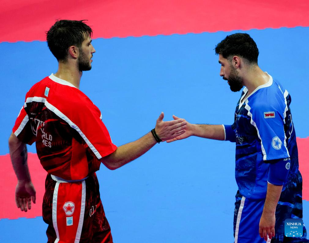 CHENGDU, 14 agosto, 2025 (Xinhua) -- Dimitrios Economo (i), de Grecia, saluda a Héctor Solorio, de México, al término del combate final por la medalla de oro masculinos por puntos -84 kg de kickboxing en los Juegos Mundiales 2025, en Chengdu, en la provincia de Sichuan, en el suroeste de China, el 14 de agosto de 2025. (Xinhua/Chen Xinbo)