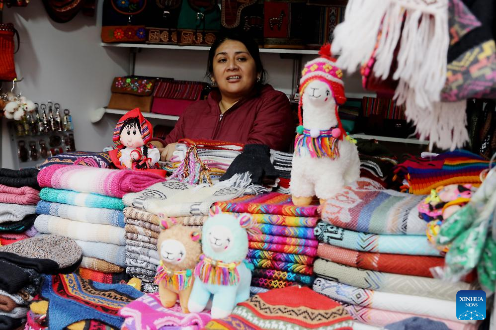 Imagen del 15 de agosto de 2025 de una vendedora esperando por clientes en un estand de la Feria de Artesanos de Miraflores (FAM), en el distrito de Miraflores, en Lima, Perú. Peruanos resaltan su identidad cultural y el valor de sus tradiciones en la segunda edición de la FAM, que se desarrolla en la capital del país con la participación de casi un centenar de maestros artesanos provenientes de distintas regiones del país. (Xinhua/Mariana Bazo)