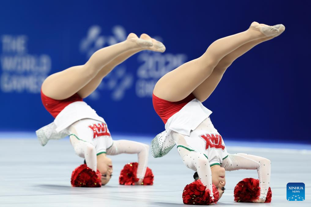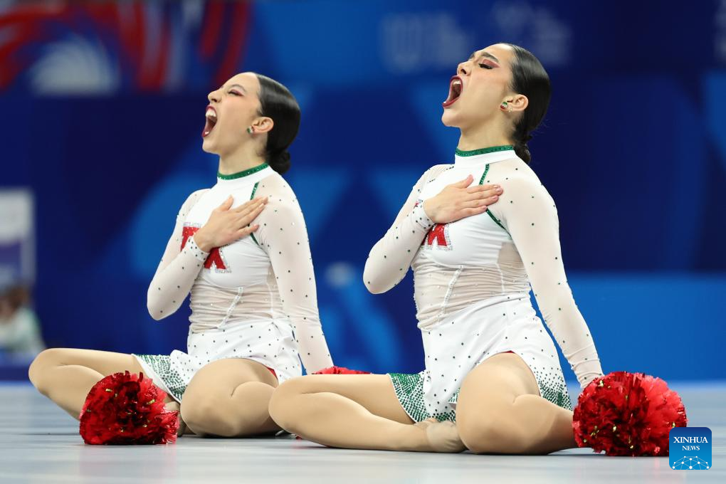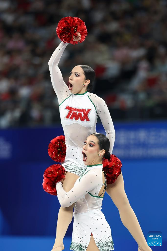 CHENGDU, 16 agosto, 2025 (Xinhua) -- Montse González/María Reyes, de México, realizan una presentación durante la ronda 2 de semifinales de animación deportiva con pompones dobles, en los Juegos Mundiales 2025, en Chengdu, en la provincia de Sichuan, en el suroeste de China, el 16 de agosto de 2025. (Xinhua/Liang Xu)