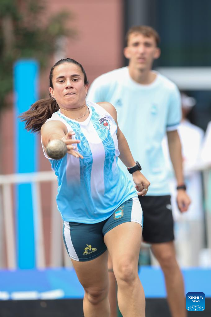 CHENGDU, 16 agosto, 2025 (Xinhua) -- Milagros Pereyra, de Argentina, compite durante la ronda de clasificación de tiro progresivo de lionesa femenino del evento de deportes de bolas, en los Juegos Mundiales 2025, en Chengdu, en la provincia de Sichuan, en el suroeste de China, el 16 de agosto de 2025. (Xinhua/Zhang Liyun)