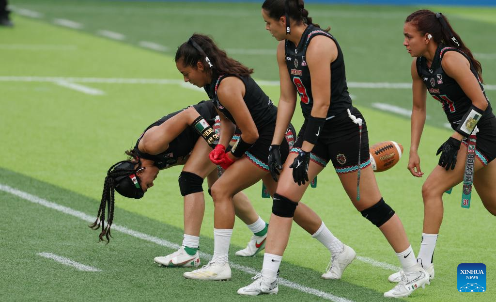 CHENGDU, 16 agosto, 2025 (Xinhua) -- Diana Flores (2-d), de México, festeja con sus compañeras de equipo después de anotar durante el partido de cuartos de final femenino de fútbol bandera entre México y China, en los Juegos Mundiales 2025, en Chengdu, en la provincia de Sichuan, en el suroeste de China, el 16 de agosto de 2025. (Xinhua/Jiang Hongjing)