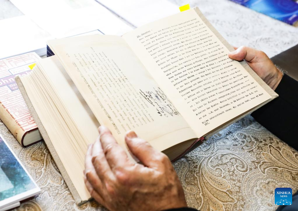 HEIDELBERG, 16 agosto, 2025 (Xinhua) -- Imagen del 7 de agosto de 2025 de Thomas Rabe leyendo los diarios de su abuelo John Rabe, en el Centro de Comunicación John Rabe, en Heidelberg, Alemania. El Centro de Comunicación John Rabe está dedicado a conmemorar a John Rabe por su papel en la protección de civiles durante la Masacre de Nanjing de 1937, una atrocidad cometida durante la guerra de agresión de Japón contra China. (Xinhua/Zhang Fan)