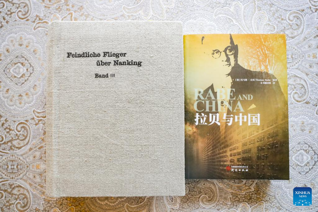 HEIDELBERG, 16 agosto, 2025 (Xinhua) -- Imagen del 7 de agosto de 2025 de una versión alemana de los diarios de John Rabe y un libro sobre él titulado "Rabe y China", en el Centro de Comunicación John Rabe, en Heidelberg, Alemania. El Centro de Comunicación John Rabe está dedicado a conmemorar a John Rabe por su papel en la protección de civiles durante la Masacre de Nanjing de 1937, una atrocidad cometida durante la guerra de agresión de Japón contra China. (Xinhua/Zhang Fan)