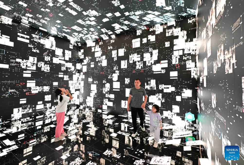 BEIJING, 16 agosto, 2025 (Xinhua) -- Niñas experimentan la "lectura inmersiva" en una biblioteca, en el distrito de Zhengding de la ciudad de Shijiazhuang, en la provincia de Hebei, en el norte de China, el 16 de agosto de 2025. (Xinhua/Chen Qibao)